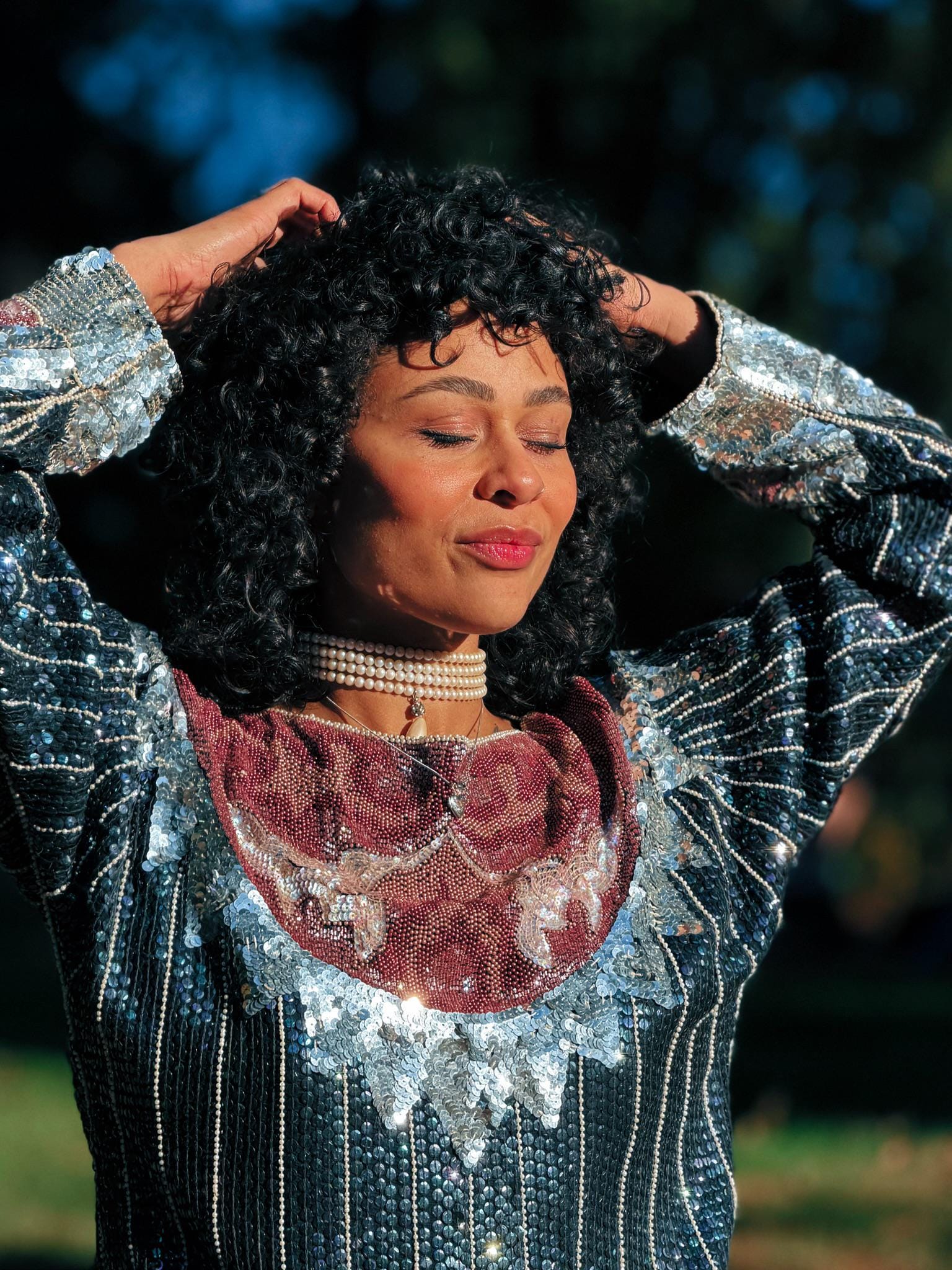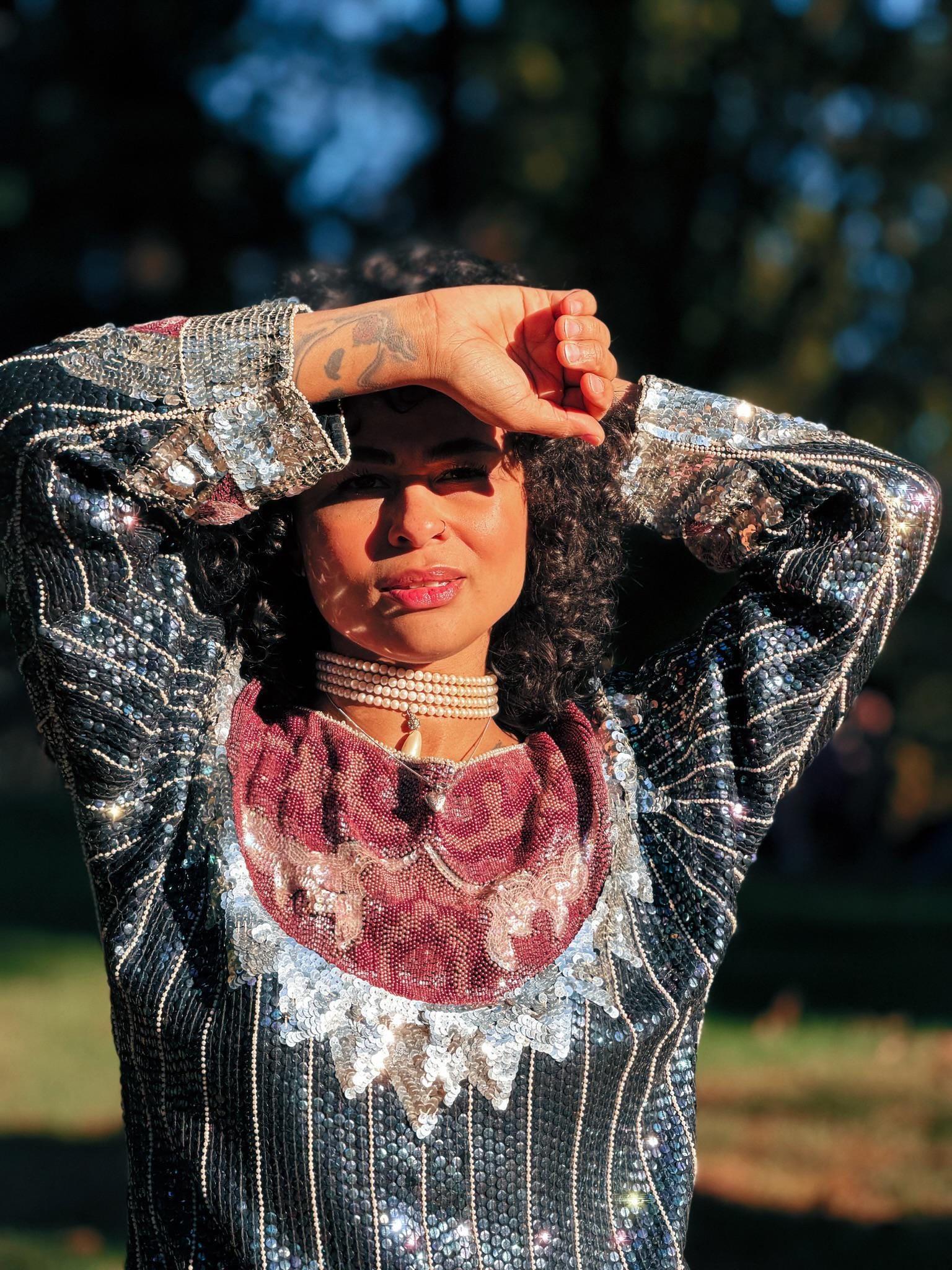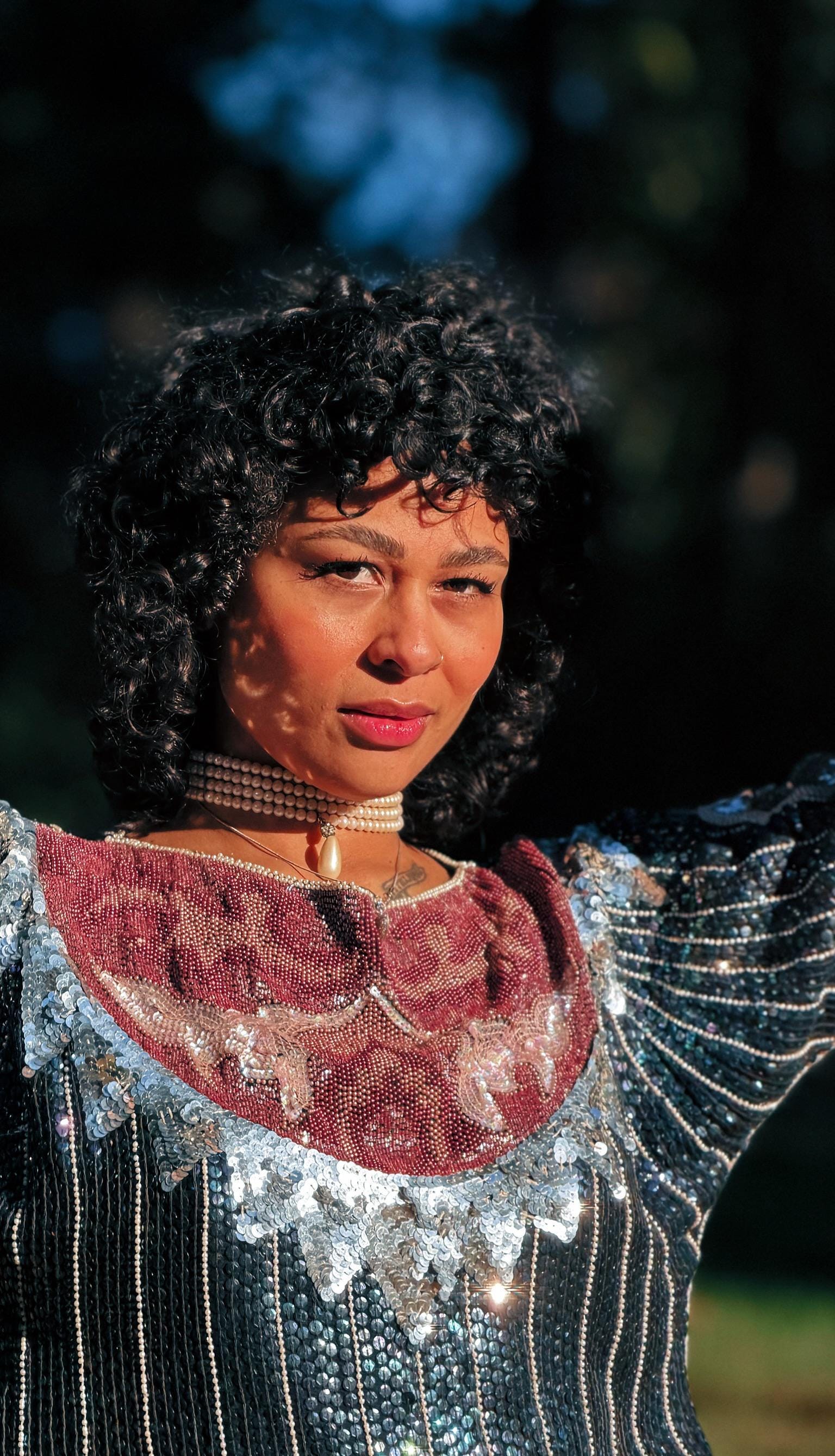 This vintage 1980s statement top by Creative Creations is pure maximalist glamour. Heavily sequined with bold, ornate embellishment and metallic accents, it features a structured silhouette that brings all the drama. Made in India and designed to shine, this piece is perfect for nights that call for sparkle and confidence.